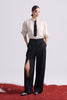 "Bol paça, sağ bacağı derin yırtmaçlı, cep detaylı, önden fermuar kanca kapamalı pantolon.