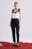 "Havuç kesim, önden fermuar çıt çıt kapamalı ve süs cepli, arkadan beli metal şerit geçişli lastikli, pili detaylı, siyah kadın pantolon.