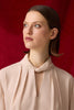 "ÜRÜN AÇIKLAMA: Dik yaka, yakası elyaflı, arkadan gizli fermuar kapamalı, önden dekolteli, uzun kollu, inci düğmeli manşetli, fit kalıp, bej bluz.