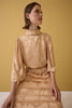 AÇIK ALTIN SARISI DİK YAKA BALON KOLLU UZUN ELBİSE