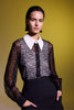 BEYAZ SİVRİ YAKA SİYAH DANTELLİ KADIN GÖMLEK