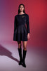 SİYAH FERMUAR DETAYLI TAŞ İŞLEMELİ PİLELİ MİNİ ELBİSE