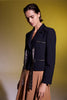 Ceket yaka, önden tek düğme kapamalı ve kuşak bağlamalı, önü süs cep detaylı, fit kalıp, krep siyah kadın ceket.